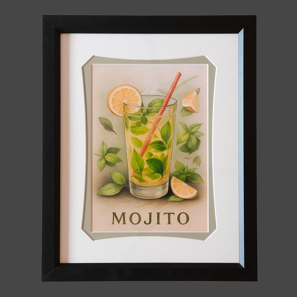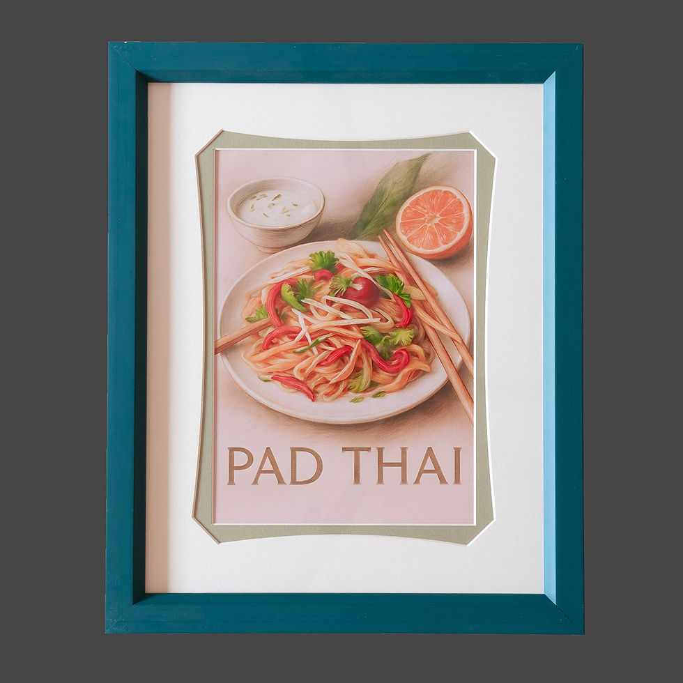 The moulding is either a black bullnose or a colour that we think suits the entire frame. The double window mountboard also brings the picture frame alive.