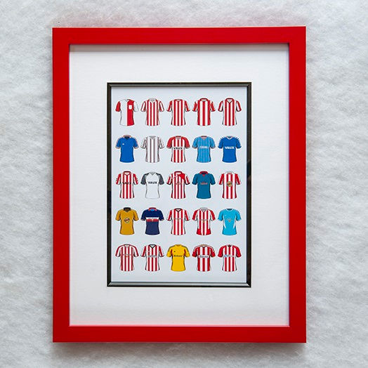 Shown as thumbprints the domestic and national teams are listed alphabetically. You'll see some have the club's name shown in the window mountboard; however, if you purchase one where the name isn't shown, don't worry as it will be printed when the frame is made. If though you don't want the name shown, simply tell us.